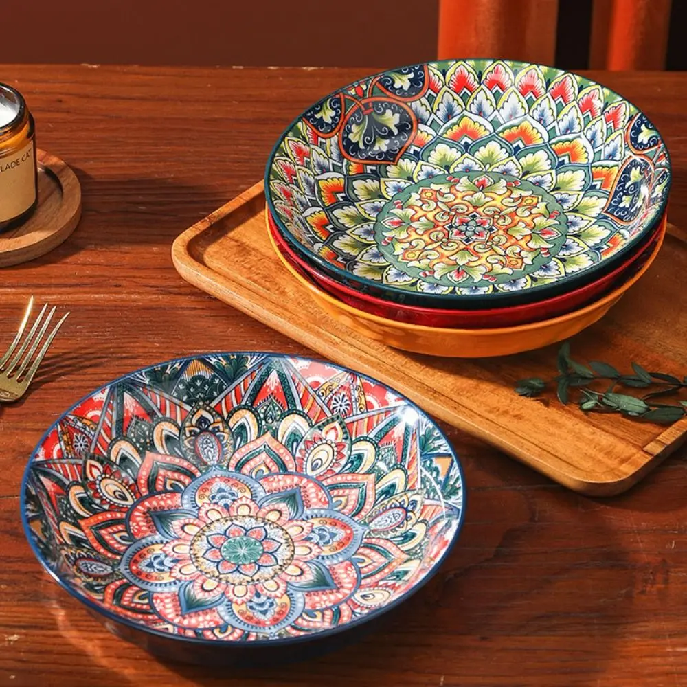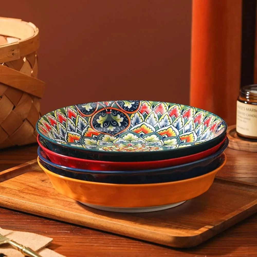 Add vibrant charm to your dining table with Amara, the bohemian ceramic dinner plate featuring a colorful underglaze floral pattern. Designed with a slightly deepened shape, Amara is perfect for pasta, salads, or full meals, making it both functional and decorative. A thoughtful choice for everyday dining or as a housewarming gift.
